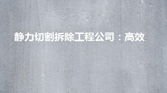 静力切割拆除工程公司已成为拆除行业的领头羊,他们所提供的高效快捷的拆除方案备受欢迎。本文将会从多个方面深入剖析该公司的解决方案,为读者提供详实的行业知识。