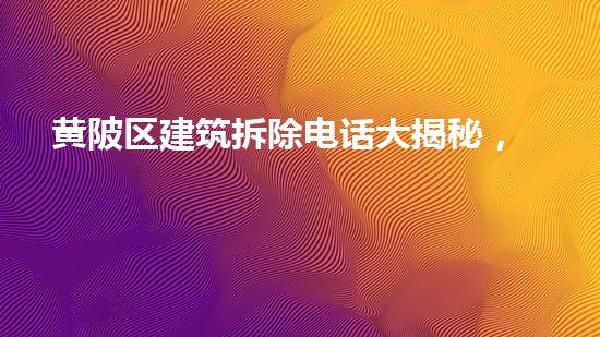建筑拆除是一个复杂的过程,需要专业技术和严格的环保安全标准。黄陂区的建筑拆除电话大揭秘将为您提供专业知识和服务,帮助您轻松解决建筑拆除烦恼。本文将从化工厂拆除、水刀切割拆除技术应用、拆除前清洗、废液处理、危废处理和环保施工等多个方面,深入解读黄陂区建筑拆除电话大揭秘,为读者提供有价值的参考。