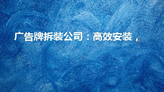 广告牌拆装公司是一家致力于高效安装、提供便捷服务的专业公司。本文将从专业化、团队素质、环保技术以及客户口碑这四个方面对该公司做详细阐述,以展示该公司在行业中的专业性及服务水平。