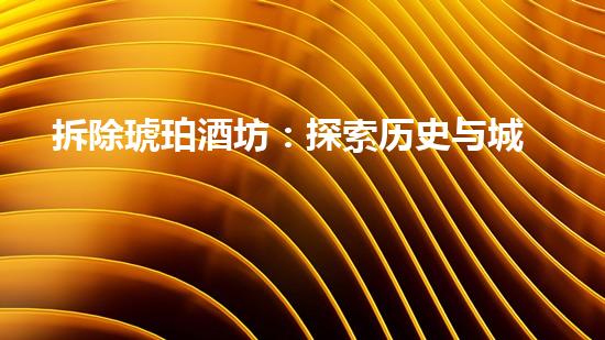 琥珀酒坊是一家历史悠久的酿酒厂,它的建筑结构和装饰风格体现了当地历史文化的风貌。但由于城市更新的需要,当局计划拆除它并建设新的商业设施。本文探讨了如何以一种可持续发展的方式处理琥珀酒坊的拆除工作。