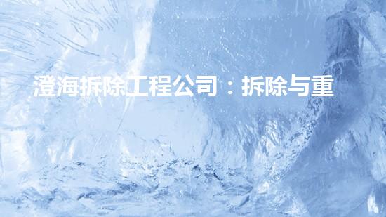 总之,澄海拆除工程公司在拆除行业中闯出了一片独特的市场空间和品牌价值,通过技术创新、高效施工、环保科技应用和资源利用等方面的突破和实践,取得了显著的成效和社会效益。未来,澄海拆除工程公司将继续推进技术创新和发展,与时俱进,拓展市场空间,实现更多优质拆除工程项目的承接和推进,为城市建设、环境治理和社会发展贡献力量。