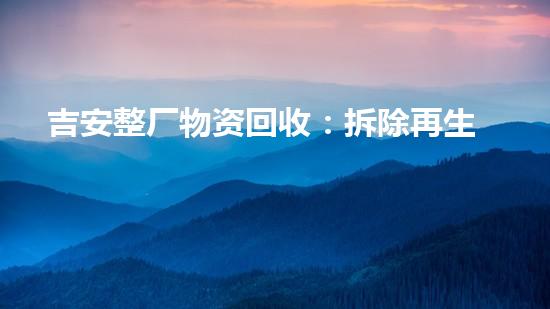 本文将探讨吉安整厂物资回收中的拆除再生和环保先行,介绍其意义和背景。作为化工技术专家,本文作者将从四个方面进行深入分析。