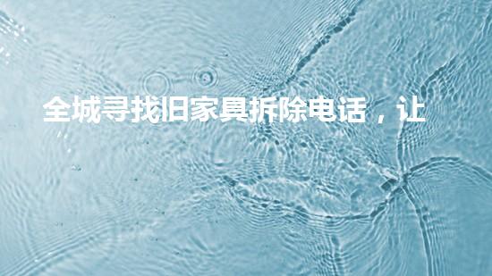随着城市化进程加快,人们的生活越来越富裕,对家居环境的要求也越来越高。然而,随之而来的问题是,居住面积不断缩小,旧家具却越来越多,占据着宝贵的空间。为了解决这一问题,全城开始寻找旧家具拆除电话,让家庭不再拥挤。