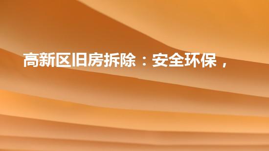 高新区旧房拆除的时间和进度是按时交工、高质量完成的关键。拆除行业专家需要对工程进度和成本进行科学合理规划和管理,提供高效、灵活的服务,让客户得到最快速、最满意的拆除服务。