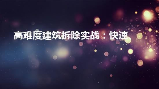 在高难度建筑拆除的实战中,快速、安全、高效是最重要的关键成功因素。使用高科技装备和技术、实施严格的安全计划、进行合适的废物处理,并对拆除项目进行适当的规划和准备,能够确保拆除进行得顺利并且对周围环境和人员的影响最小。