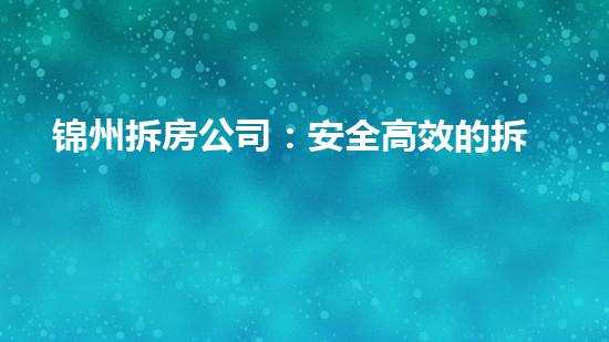 锦州拆房公司是一家提供安全高效的拆房服务的企业,本文将全面介绍该公司的业务,力求为读者提供详实的背景信息以及专业深入的阐述,包括巴洛仕集团化工厂拆除、巴洛仕不动火水刀切割拆除技术应用等方面,以期为读者提供全面了解该公司的机会。