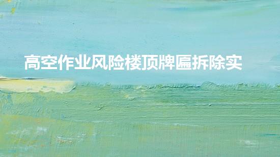 楼顶牌匾拆除是一项高空作业。在实践中,我们需要在充分考虑风险的情况下,采取适当的拆除方法和施工设备,并严格监督施工人员的操作,以避免事故的发生。其中,水刀切割技术是近年发展起来的一种快速、精确的拆除方法,不仅保证了施工质量,还降低了施工风险。同时,施工现场设备的选择和安装也是影响施工风险的重要因素之一,因此,必须确保施工设备的可靠性和安全性。