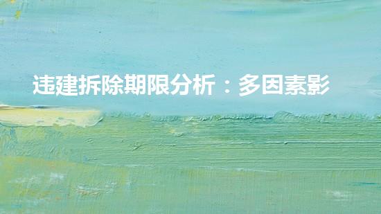 综上所述,针对违建拆除期限分析:多因素影响与优化建议,本文从法律法规约束、施工技术选择、项目的复杂性、拆除环节的优化、协同配合的重要性以及技术标准的制定和落实等方面进行了详细阐述。在实践中,应当认真处理以上问题,找到优化的方法,提高工作效率,在确保拆除项目的安全的同时实现高效环保、节能和资源再利用。