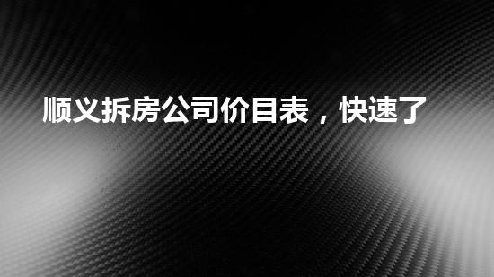 本文将介绍顺义拆房公司的价目表,通过了解拆房费用,引出读者的兴趣,并提供背景信息。随着城市化的发展,拆房行业也得到了快速发展。因此,人们开始更加关注拆房费用的因素,如安全、环保等。本文将从4-6个方面对顺义拆房公司价目表进行详细深入的阐述,希望能够帮助读者更加深入地了解拆房行业。