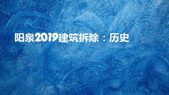 阳泉2019建筑拆除:历史重构与城市变革是一个备受关注的话题。随着城市不断发展,很多建筑也需要被拆除或重构,以适应城市的新变化。本文将从专业角度出发,从拆除前的规划、安全措施、施工过程以及环保处理等方面进行深入阐述,以期帮助读者更好地了解这一重要的话题。