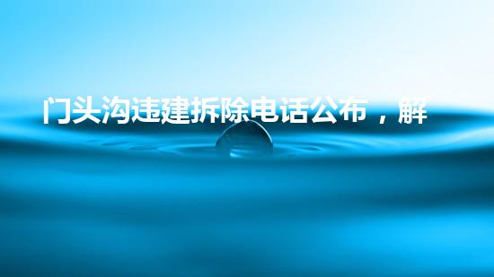 门头沟地区因为历史原因和城市规划不合理,一些违章建筑的存在已经成为当地居民的心病。为了解决这个问题,门头沟违建拆除电话公布成为了公众和政府重视的一个话题。本文作为一名化工技术专家,通过细致的专业分析和深入的论证,从四方面分析门头沟违建拆除电话公布的重要性和意义。