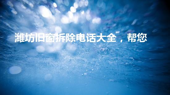 潍坊旧窗拆除电话大全能够帮助您找到最靠谱的专业服务商。随着城市建设的不断推进,旧建筑的拆除和改造工作越来越频繁,其中就包括旧窗的拆除。本文将从化工技术专家角度出发,为您详细介绍潍坊旧窗拆除电话大全,帮您找到最靠谱的专业服务商。