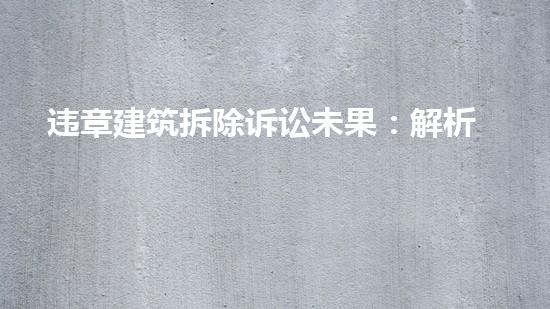 随着城市化的快速发展,违章建筑问题日益严重,给城市管理和规划松了一把懈。但随着政府对违章建筑拆除力度的加大,一些业主和施工公司通过诉讼推迟拆除,给执法者带来了很大的困难。因此,本文从法律程序及诉讼技巧两个方面,与读者一起深入探讨违章建筑拆除诉讼未果的问题。