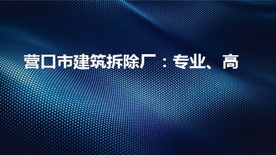 摘要:营口市建筑拆除厂是一家专业、高效、安全的拆除公司。该公司拥有先进的技术和专业的人才,为广大客户提供高质量的拆除服务。本文将从几个方面详细介绍营口市建筑拆除厂的专业、高效、安全拆除。