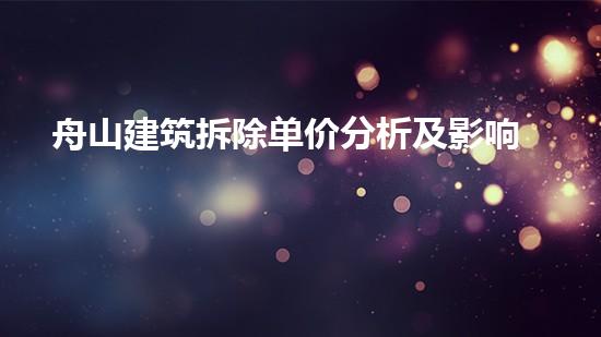 本文分析了舟山建筑拆除单价及其影响因素。在舟山建筑拆除行业中,拆除项目的工程量、施工难度、项目规模、社会环境等因素都会影响拆除单价。同时,采用科技创新和环保技术也是影响拆除单价的重要因素。文章从专业角度深入分析了这些因素,提供了详细的探讨和建议。