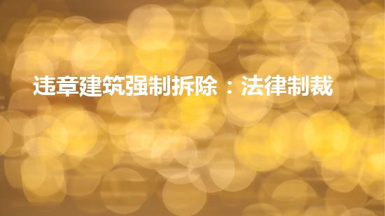 本文将阐述违章建筑强制拆除:法律制裁的利刃,传递清晰的信息和思路。随着城市更新的不断推进,违章建筑的拆除成为了一项社会工程。本文将介绍拆除行业专家的观点以及相关技术,探讨如何从法律上实施违章建筑的强制拆除,为治理违章建筑提供有力的措施和保障。