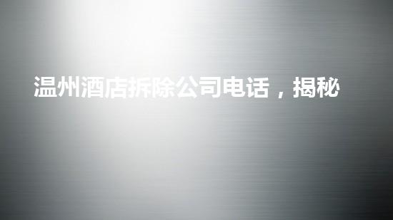 随着酒店市场的调整,越来越多的酒店在拆除重组中寻求转型突围的机会,其中温州酒店拆除公司成为行业的焦点之一。本文通过对温州酒店拆除电话公司进行深入分析,揭示酒店市场调整的潮流,为广大读者提供了深入了解酒店市场趋势的机会。