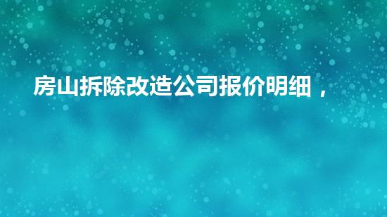 房山拆除改造公司报价明细,预算更清晰,合作更省心!本文从拆除行业专家的角度出发,就房山拆除改造公司的报价明细、合作方式、技术方案以及环保措施等方面做详细解析,以期让读者深入了解该公司的服务内容和优势。