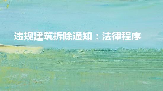 法律程序指的是依照法律规定,按照程序合法地执行某项工作。一份违规建筑拆除通知需要依据国家的相关法规来进行。否则,就不能顺利开展工作,会导致违法行为。因此,严格的法律程序是必须的。
