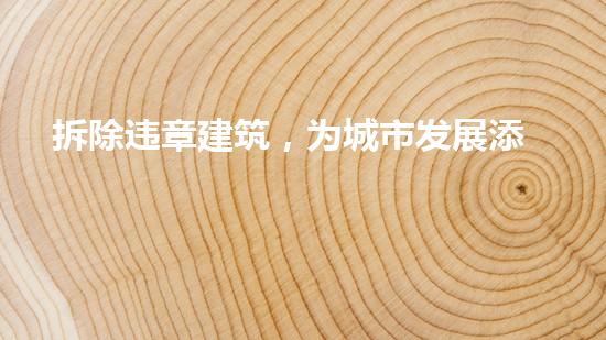 拆除违章建筑,为城市发展添动力,是我们的职责和义务。在拆除工作中,我们必须根据环保、安全和效率的标准,采用多种技术手段,保护环境和居民的生命财产安全。此外,我们也必须进一步完善拆除建筑物的法律法规和相关制度,为拆除工作提供法律保障和支持。