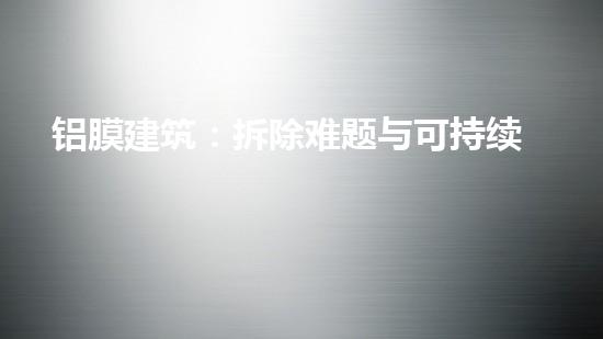 就像其他建筑材料一样,铝膜建筑也会在一定时期内进行更换或者拆除。拆除铝膜建筑时,有许多潜在的难题需要考虑。首先,铝膜建筑被粘在建筑物表面,难以从建筑物上进行恰当、干净的分离。其次,由于铝膜建筑是轻便材料,不适合用人力或者重型机械进行拆除,这意味着必须寻找一种更为精细的技术方法来应对拆除问题。