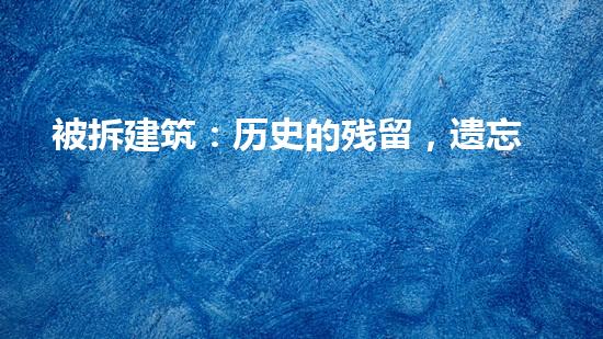 建筑是历史的载体,也是文化的遗产。然而,许多历史建筑在不断的城市发展和更新中被拆除。这些被拆建筑残留下来的建筑物,成为历史和文化的见证。而作为拆除行业的专家,我将从多个角度深入阐述被拆建筑:历史的残留,遗忘的见证。