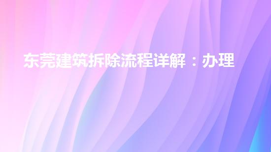 东莞市是中国发达的制造业城市之一,建筑拆除工作也呈现出快速发展的趋势。本文将从办理手续、清理、回填等步骤为中心,对东莞市建筑拆除的流程进行详解,同时对拆除行业中一些关键的技术和环保问题进行探讨。
