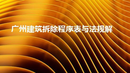 广州是一个充满活力的城市,拥有丰富的文化、历史和建筑遗产。在城市快速发展的同时,一些老旧建筑需要拆除。然而,在拆除建筑之前必须遵守一定的程序和法规。本文将重点介绍广州建筑拆除程序表和法规,并解析其中的问题和挑战。