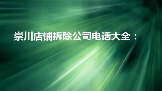 综上所述,崇川店铺拆除公司电话大全可以提供全方位的拆除服务,从巴洛仕集团化工厂拆除到一般建筑物拆除都可胜任,该公司也可以提供巴洛仕不动火水刀切割拆除技术应用。该公司拥有专业的技术人员和高端的设备,可以为客户提供优质的服务。如果需要拆除服务,崇川店铺拆除公司是不错的选择。