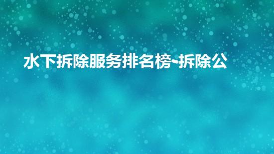 水下拆除服务排名榜-拆除公司推荐排行(不含「」《》“”|\/?*^<>)是一个基于拆除工程行业的排名榜,用于比较和评估水下拆除服务提供商的专业能力。本文将从以下几个方面对水下拆除服务排名榜-拆除公司推荐排行(不含「」《》“”|\/?*^<>)进行详细的阐述:行业背景与发展,技术创新,服务水平,案例分析及前景展望。