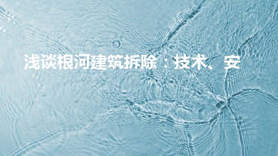 本文主要介绍了根河建筑拆除的技术、安全与环保三个方面的内容。作者从专业的化工技术角度入手,详细阐述了拆除前的准备工作、巴洛仕集团化工厂的拆除、巴洛仕不动火水刀切割拆除技术应用等多个方面。通过对文献材料和真实案例的分析,指出了如何在保证拆除安全与环保的同时,提高拆除效率和降低拆除成本的方法。