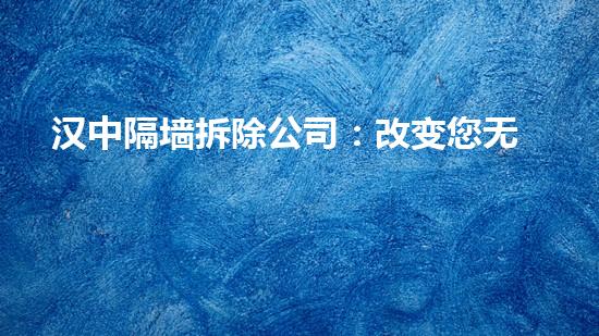 汉中隔墙拆除公司是一家致力于改变人们无法改变的空间的专业隔墙拆除公司。本文将从专业角度介绍汉中隔墙拆除公司的特点、技术、服务和成果,并分析其在隔墙拆除领域的优势和价值。