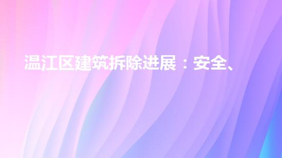 随着城市建设的不断发展,建筑拆除也成为了必不可少的一环。温江区建筑拆除进展:安全、环保、协调是关键。在这篇文章中,我们将会从专业角度出发,对温江区建筑拆除的进展情况进行详细的阐述,分析其中的各个方面,提供专业的意见和建议。