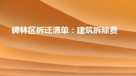 碑林区位于陕西省西安市中心,历史文化底蕴深厚,但由于城市更新的需要,该区的建筑拆除工作日益增多。碑林区拆迁清单:建筑拆除费用一览表是一份详细的清单,记录了每个工程所需的建筑拆除费用。这份清单涉及的项 目有住宅、商业、工业、公共服务设施等等,都需要进行拆除工作。意义重大,为拆除行业提供了丰富的数据信息,也为拆除行业的规范化、标准化提供了重要的参考。