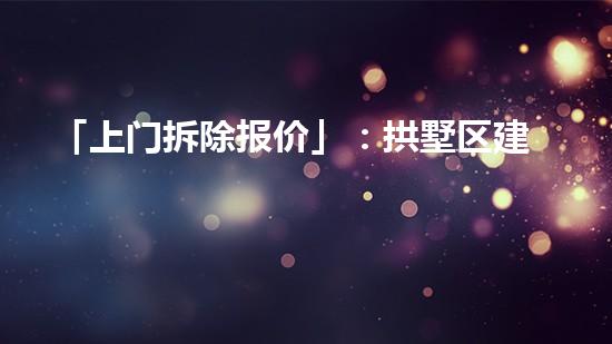 在拆除工程领域,拱墅区建筑拆除服务是一项重要的工作。快速上门报价成为了近年来该领域中的热门话题。本文将从专业化工技术的角度出发,对「上门拆除报价」:拱墅区建筑拆除服务,快速上门报价做详细深入的阐述。