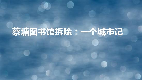 本文主要围绕蔡塘图书馆拆除这一事件展开,揭示一个城市记忆的消失。文章从拆除行业专家的角度,探讨该事件的原因、影响以及相关处理措施,反映了现代城市化进程中,历史遗产保护和环境治理之间的复杂关系。