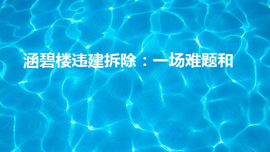 涵碧楼,是中国苏州市的文化古迹之一,建于明朝,有着悠久的历史和独特的文化价值。然而,因为历史遗留问题,涵碧楼的一部分存在严重的违建问题。为了保护涵碧楼的文化价值,当局决定实施违建拆除,同时保护周围居民和环境不受污染。然而,这并不是一件容易的事情。涵碧楼违建拆除将面临巨大的难题和挑战,需要各方专家的通力合作和努力。本文将从化工技术专家的角度,对涵碧楼违建拆除进行详细阐述和分析。