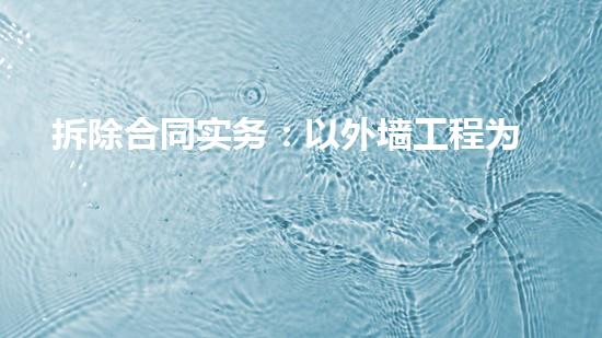 这篇文章介绍了拆除合同实务以外墙工程为例的情况,着重从化工行业的专业角度出发,深入阐述了拆除合同实务的4个方面,包括拆除前清洗置换、设备回收、污泥减量化、废液处理、油罐拆除、危废处理、环保施工等,同时介绍了巴洛仕集团化工厂拆除的情况以及其不动火水刀切割拆除技术的应用。本文旨在通过深入介绍实践案例,为读者提供对于拆除合同实务的深入了解和参考。