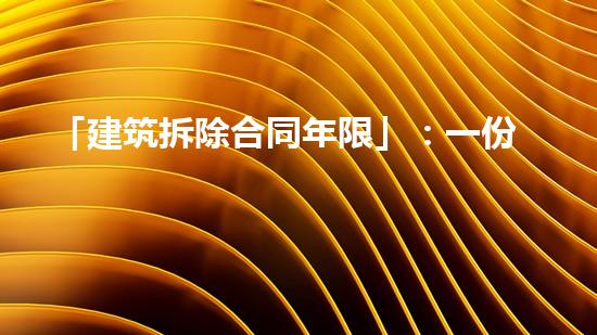 建筑拆除是在建筑物寿命到期、经济利益不能保持或其它因素影响下,对建筑物进行拆除的过程。然而,对于建筑拆除的年限问题,各国或地区法律、政策和标准并不一致。本文将从不同角度对建筑拆除合同年限进行分析。