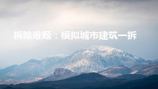 拆除难题一直是城市更新和重建中不可避免的问题,随着模拟城市的发展,建筑“一拆了之”的问题也愈加突出。本文以化工专家的身份,通过分析模拟城市建筑“一拆了之”的后果,并从多个方面提出相应的解决方案,为读者揭示了拆除难题的实质和解决之道。