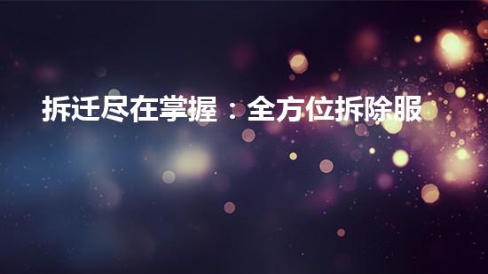 通过对拆迁尽在掌握:全方位拆除服务公司的专业优势进行分析,可以看出该公司在拆除工作中具有极大的优势。其不动火水刀切割拆除技术快速、环保,同时在处理过程中也注重环保效益。此外,该公司还建立了完善的安全管理和应急预案体系,保障整个拆除工作的安全性。因此,可以说该公司是当前拆迁领域中的专业技术服务领导者。