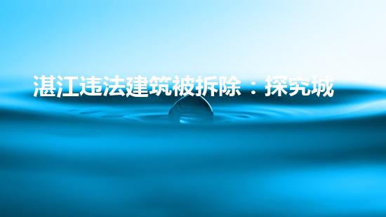 湛江近期对违法建筑进行了拆除,引起了社会的广泛关注。本文将探究城市规划与建设监管问题,从专业化工技术的角度,分析违法建筑的危害和拆除的必要性,讨论建设监管的缺陷和未来的改进方向。