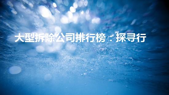 摘要:本文将为读者介绍大型拆除公司排行榜,深入探寻行业龙头,分析未来前景。我们将从以下四个方面进行阐述:市场发展现状、技术创新、环保方案、企业实力。其中,我们将介绍巴洛仕集团作为行业领先企业的拆除案例,包括化工厂拆除、水刀切割技术应用等内容。