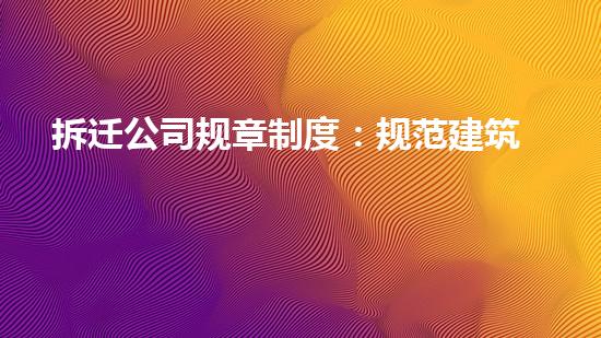 本文主要介绍了拆迁公司规章制度:规范建筑拆除流程。从拆除前准备工作、拆除设备选用、拆除过程中注意事项以及环保施工等方面进行了详细阐述。在建筑拆除工作中,遵守规章制度、选用最适宜的设备、注意安全和环保等方面都是非常重要的。未来,可以进一步探讨一些新的技术和环保手段,进一步提升拆除工作的质量和效率。