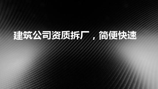 文章介绍建筑公司资质拆厂,简便快速,安全可靠的方法。这种拆除技术能够有效地减少拆除过程中的风险和污染,提供更加便捷、快速而且可靠的解决方案。