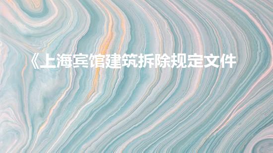 《上海宾馆建筑拆除规定文件详解》是一份详细说明上海市在宾馆建筑拆除方面的相关规定的文件。该文件对于规范上海市的建筑拆除程序,维护市民权益,保护环境,确保施工安全具有重要意义。本文将从拆除行业专家的角度出发,对该文件进行深入解读,以期让读者更加全面地了解这一规定在拆除工作中的积极意义。
