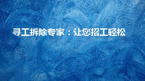 寻工拆除专家是一个快速找到拆除行业工作岗位的平台。招工是一个细致、劳动力密集型的工作,特别是在拆除行业这个领域。本文将介绍寻工拆除专家是如何帮助您轻松找到工作,同时为您提供相关背景信息。