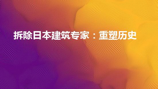 拆除日本建筑专家可以通过对历史遗产的保护、安全卫生与环保、技术创新与发展等方面的不断努力,参与到历史文化的传承和重塑中。通过将传统的建筑与现代科技相结合,不断地发掘建筑本身所具备的文化精髓,创新应用并且拆除不再需要的建筑物,让历史文化得以保存和传承。