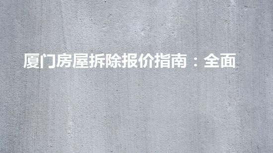 本文旨在介绍厦门房屋拆除报价指南,全面解析拆除费用及流程,并提供背景信息。通过本文的阐述,读者能够更深入地了解厦门房屋拆除的具体流程和费用,同时也能够了解拆除行业的相关知识。