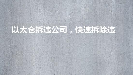 以太仓拆违公司是一家专注于快速拆除违建,保护城市形象的企业。本文将从专业角度对该公司进行深入阐述,主要包括以下几个方面:公司背景介绍、技术设备的应用、环境保护措施以及未来发展方向。通过本文的介绍,读者将深入了解以太仓拆违公司的专业能力和发展潜力。